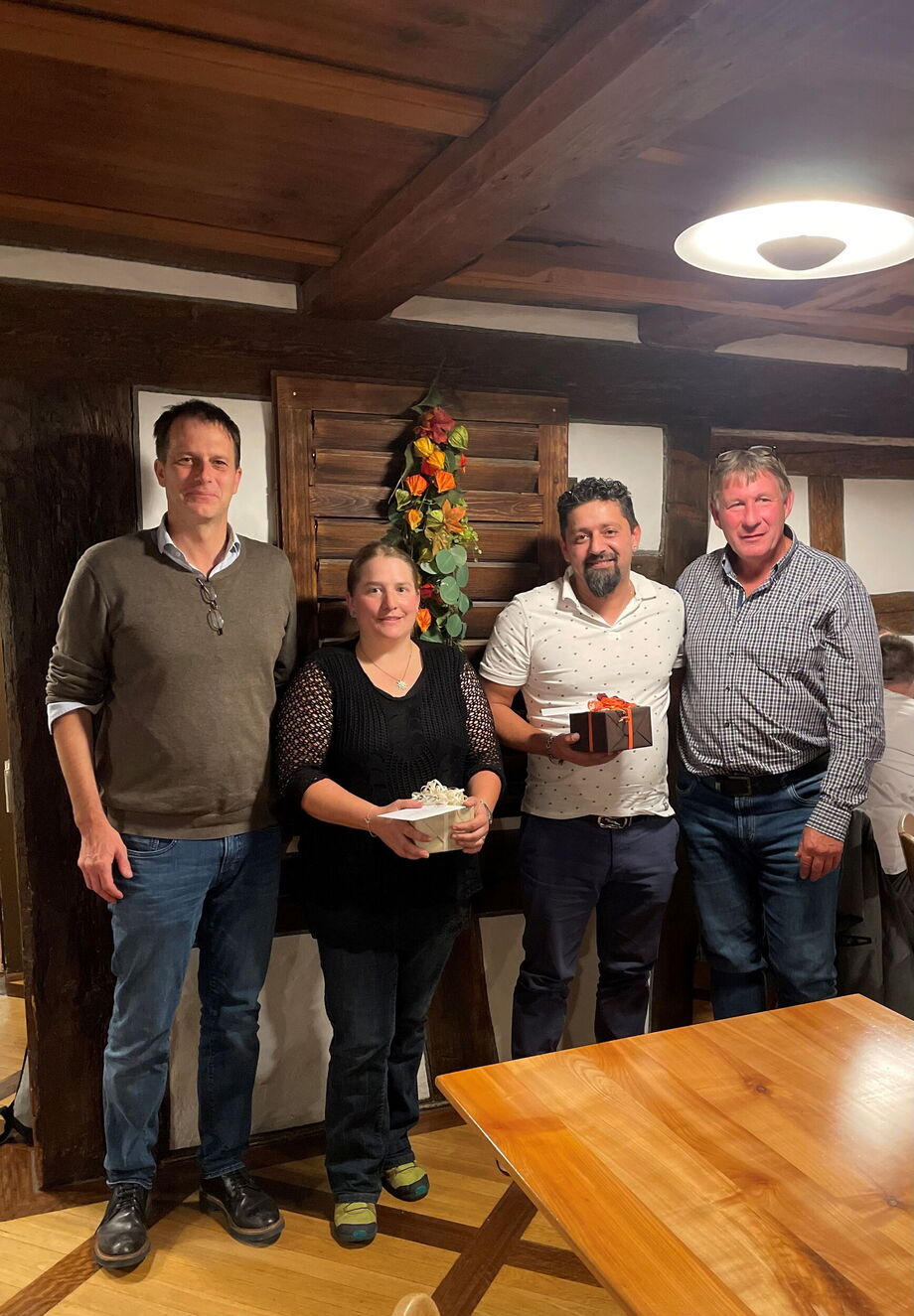 Am 28. Oktober 2023 fand das gemütliche und sehr feine Nachtessen im Rest. Pilgerhaus in Bronschhofen statt. In einer ungezwungenen und heiteren Atmosphäre gratulierten und bedankten sich Dominik Hasler und Daniel Gächter bei Myriam Aerne und Mirco Jovanovic für ihre wertvolle Mitarbeit in den letzten 10 Jahren.
